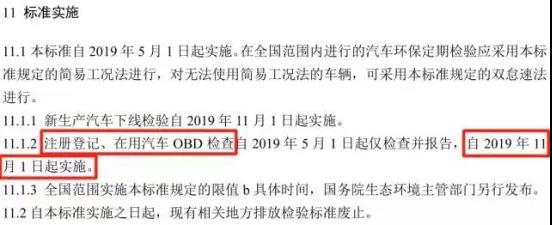新標(biāo)準(zhǔn)由于修訂內(nèi)容較多,增加了OBD檢測等新內(nèi)容,因此標(biāo)準(zhǔn)實(shí)施采取分步走方式。