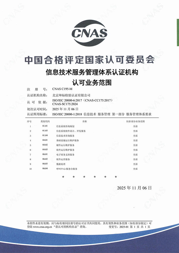 | CNAS-C195-M信息技術服務管理體系 | CNAS-C195-M信息安全管理體系 |